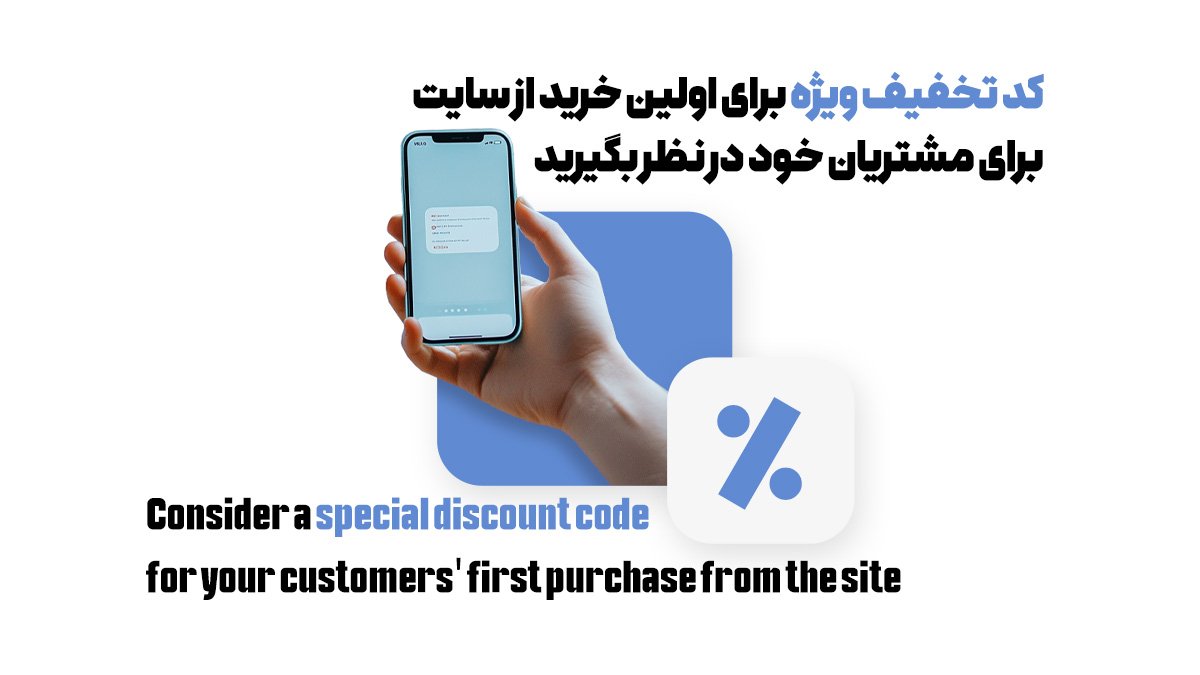 کد تخفیف ویژه برای اولین خرید از سایت برای مشتریان خود در نظر بگیرید
