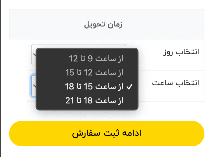 به روز رسانی در انتخاب ساعت تحویل با پیک