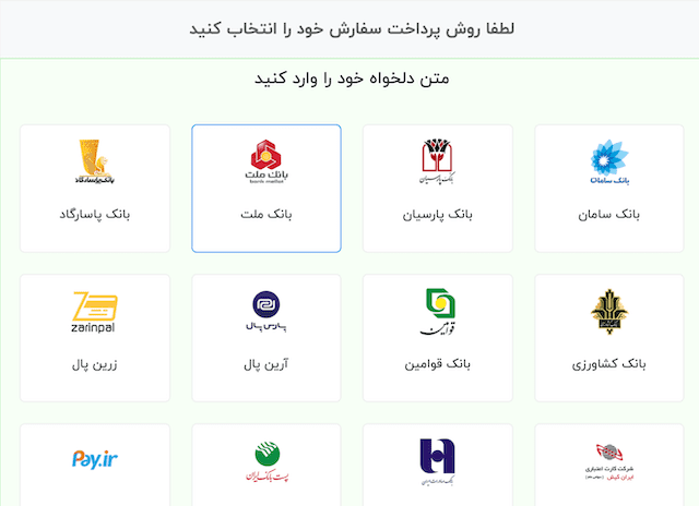 بهبود در بخش انتخاب روش پرداخت