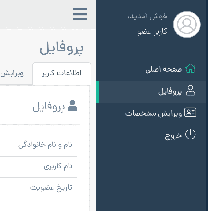 افزودن منو به پنل پروفایل برای کاربران عضو شده
