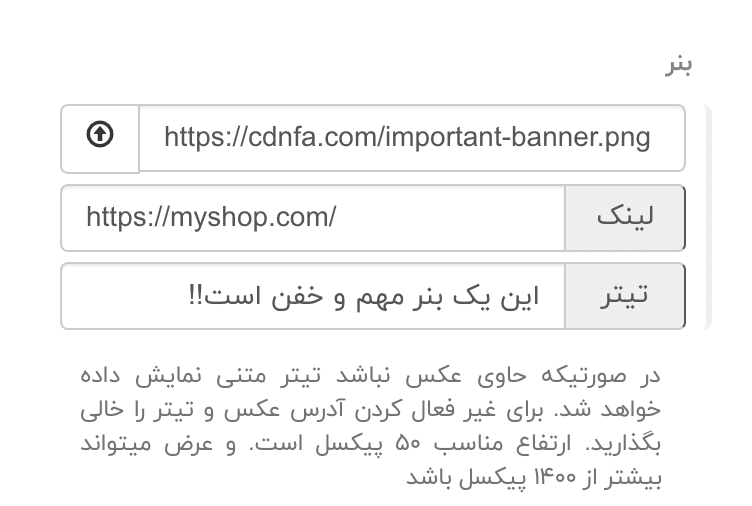 برای اطلاع رسانیهای مهم میتوانید از این آپشن استفاده کنید. این نوار باریک میتواند حاوی تصویر بنر یا متن باشد و میتواند لینک داشته باشد. از طریق منوی طرح در بخش هدر یا سایر تنظیمات (بسته به نسل قالبها) در دسترس است.