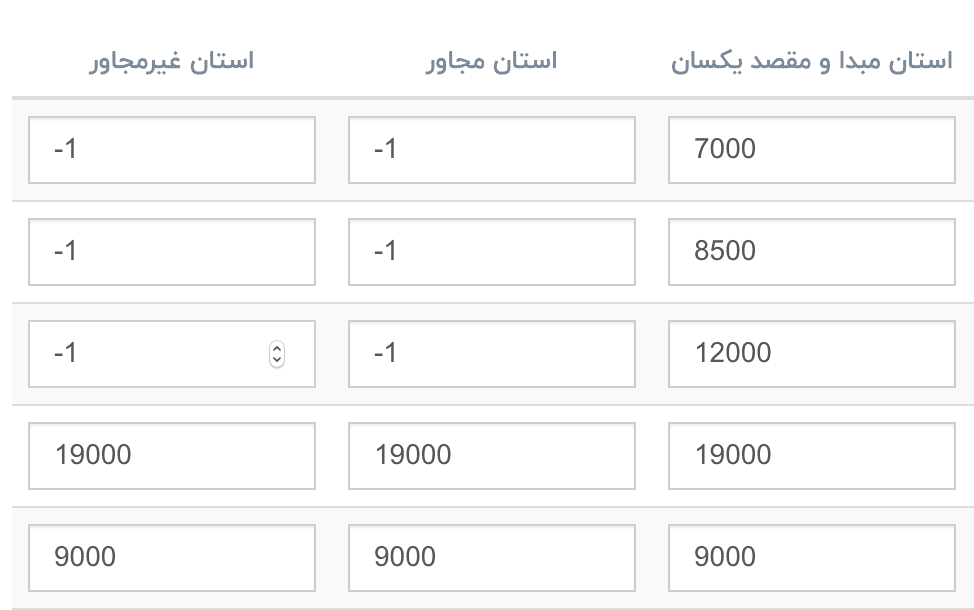 به روز رسانی در بخش مدیریت هزینه های ارسال