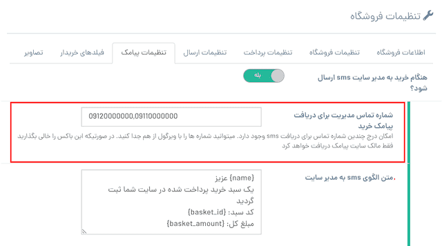 مسیر: تنظیمات » فروشگاه » پیامک