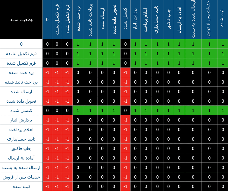 به هنگام ساخت سبد دستی. تغییر وضعیت یک سبد. یا تغییر گروهی وضعیت در صفحه مدیریت سفارشها موجودی ها بر اساس این جدول مدیریت خواهند شد.