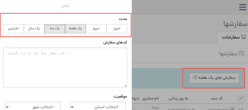 فیلتر سفارشهای خرید بر اساس بازه زمانی