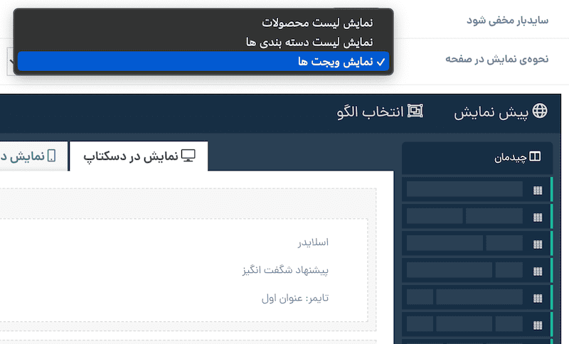 🎨 به جای نمایش ساده لیست محصولات یا زیربخشها، میتوانید محتوای دلخواهتان را با ویجتساز طراحی کنید.