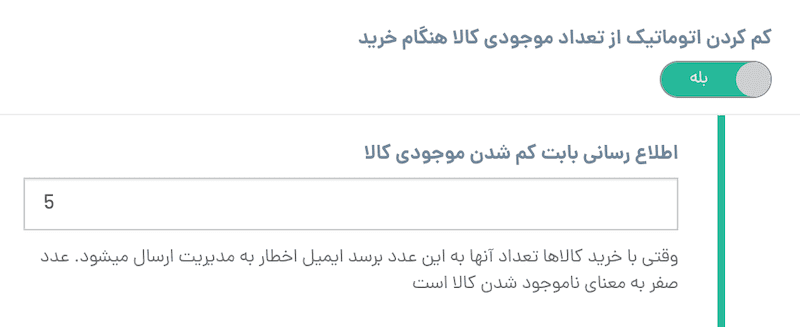 این آپشن فقط وقتی عمل میکند که گزینه (کم کردن اتوماتیک از تعداد موجودی کالا هنگام خرید) از تنظیمات فروشگاه فعال باشد.