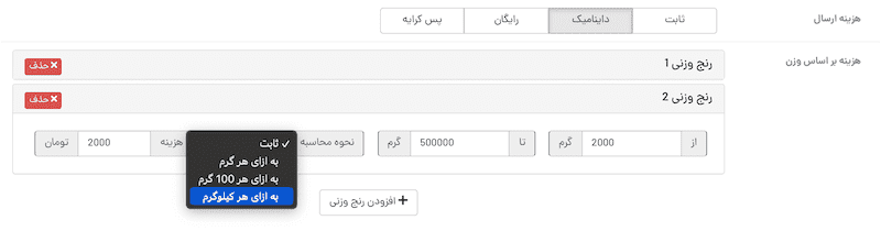 محاسبه هزینه ارسال بر اساس وزن مرسوله