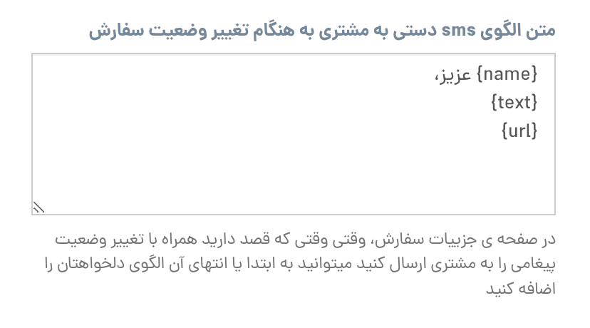 شخصی سازی پیامک تغییر وضعیت سفارش